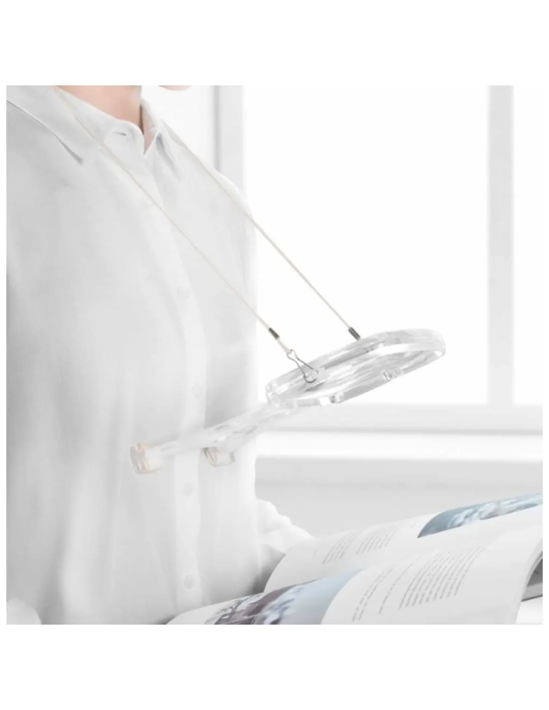 Con este soporte, la lectura, la utilización del teléfono móvil o tablet o las manualidades como coser serán más sencillas. Tan solo colócate la lupa sobre el abdomen y pasa su cinta por el cuello y listo para que puedas llevar a cabo tus actividades.