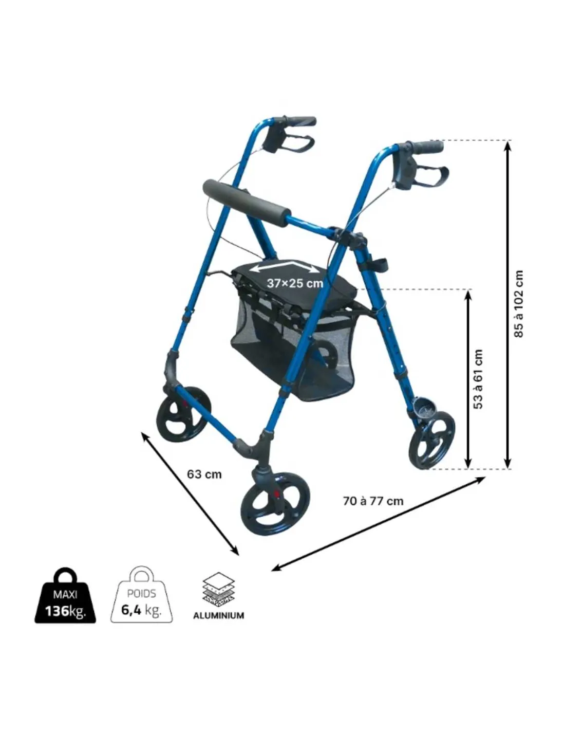 Andador de Aluminio NEO FASHION con asiento regulable en altura y freno en puño
