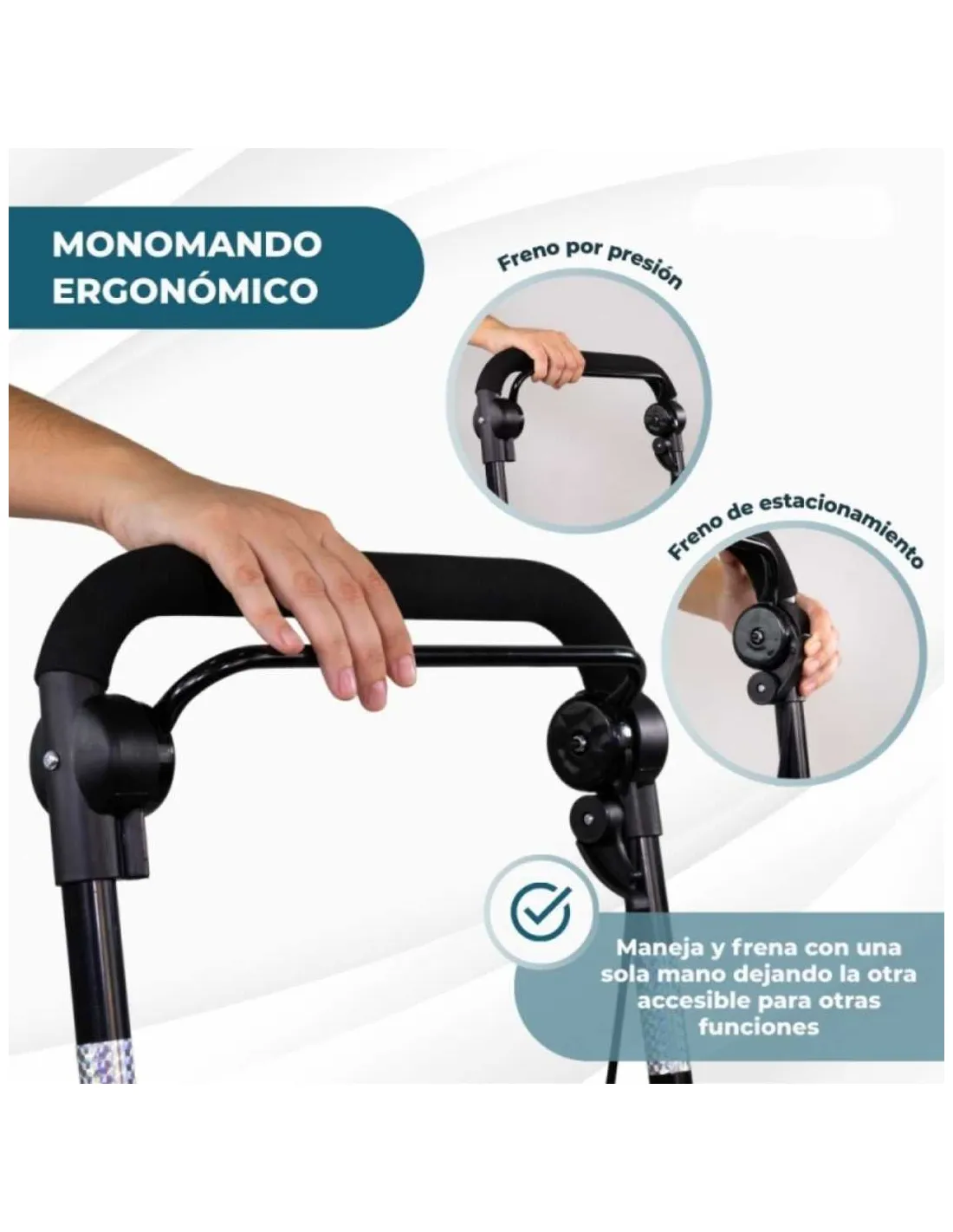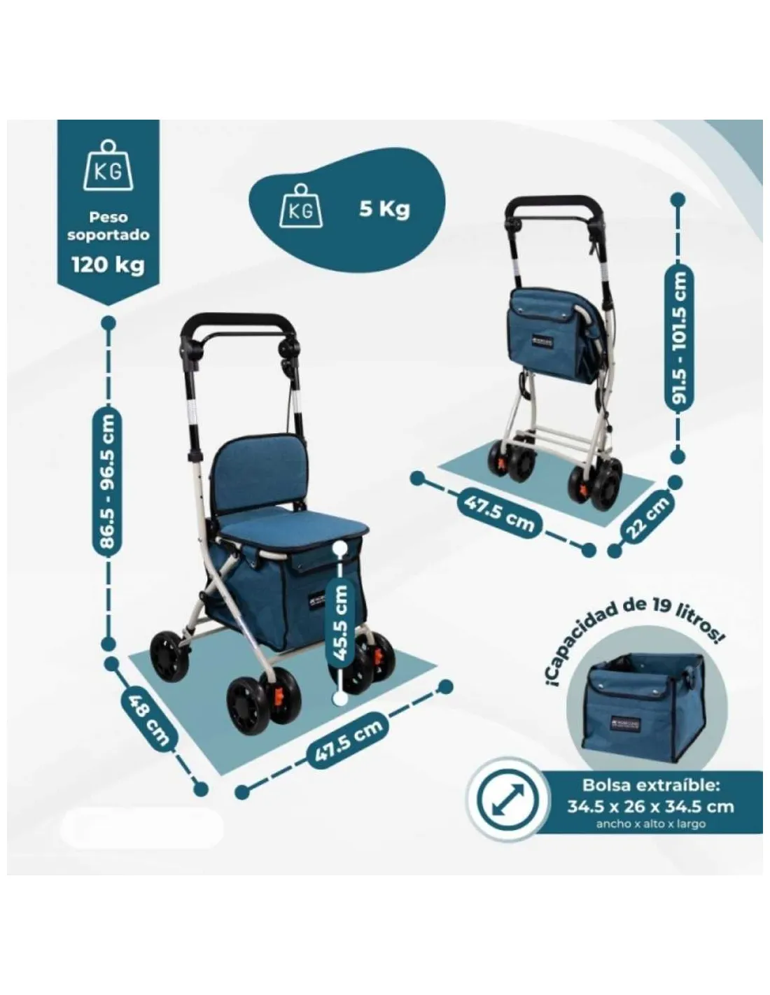 Además, este carro compra cuenta con un asiento acolchado, cómodo y resistente para poder descansar durante el paseo o mientras se esperan las grandes colas en el mercado. Asimismo, cuenta con un respaldo que permite relajar la espalda y una bolsa para guardar la compra, la cual es extraíble, impermeable, lavable y soporta hasta 5 kg. El carro de la compra Coliseo es monomando lo que permite al usuario utilizarlo con una sola mano mientras que, por ejemplo, pasea al nieto o al perro. También es regulable en altura, con tres posiciones disponibles: 86,5 cm, 91,5 cm y 96,5 cm, lo que permite adaptarlo a la estatura del usuario y mantener una postura cómoda y ergonómica durante su uso.