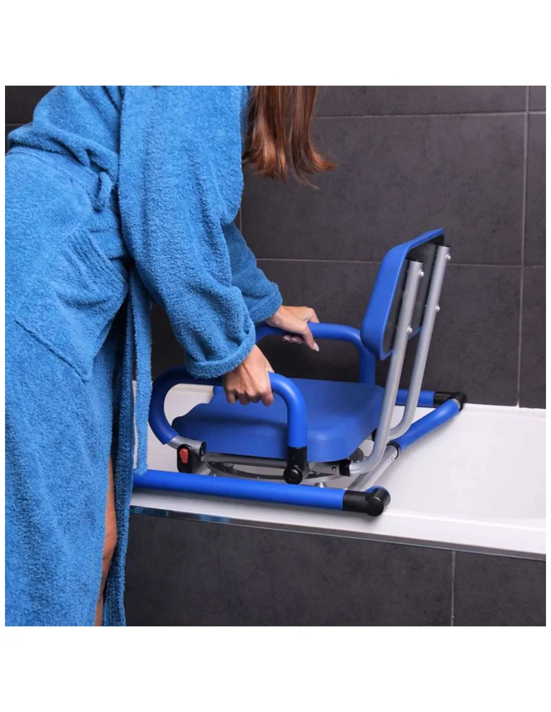 Asiento Giratorio de Bañera con asiento, respado y reposabrazos abatibles blandos y base ajustable para anchos de bañara de 69 a 79 cm