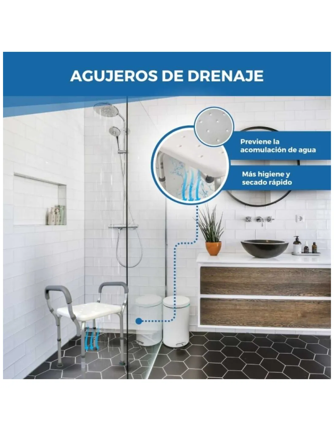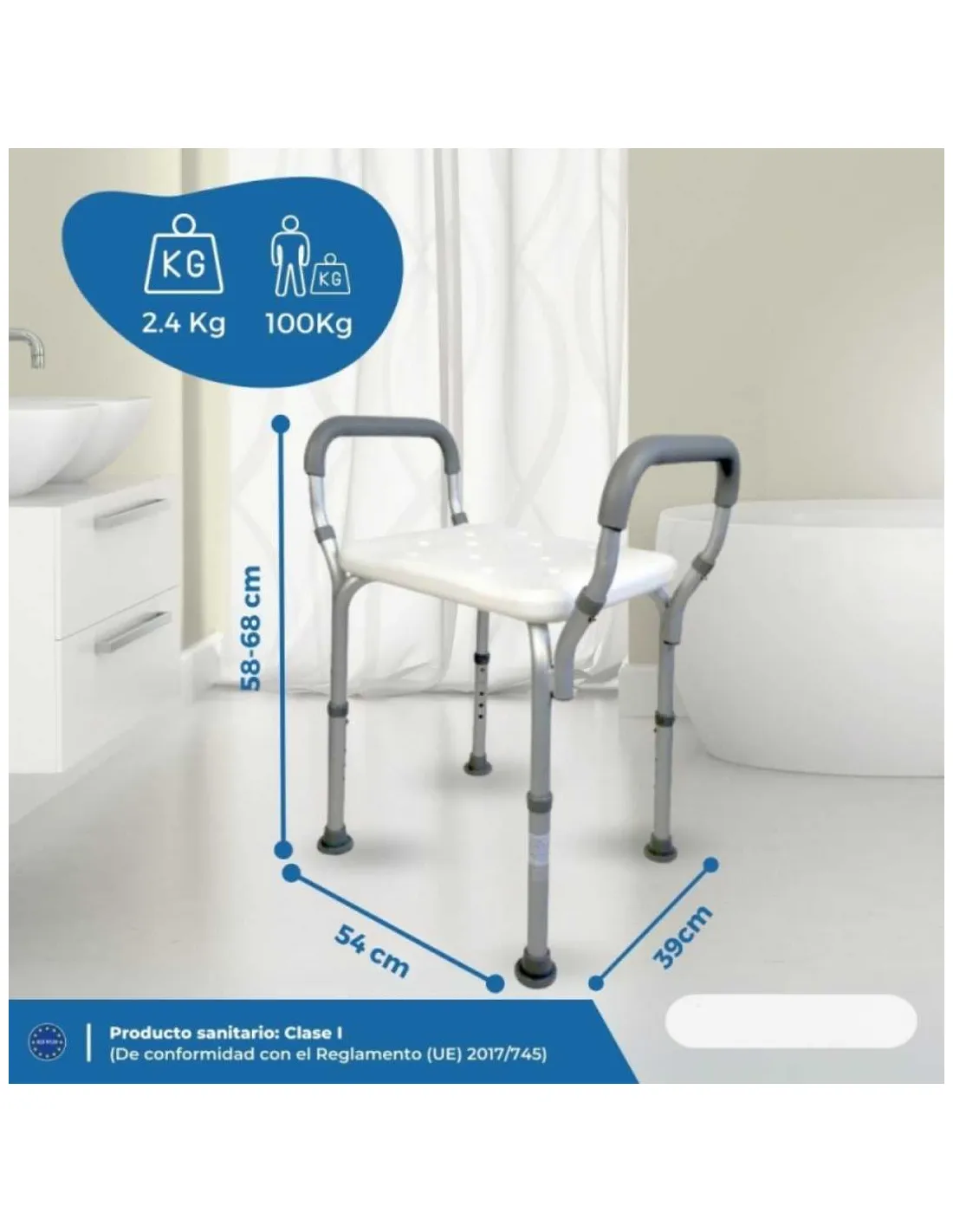 Características técnicas de la silla de baño: