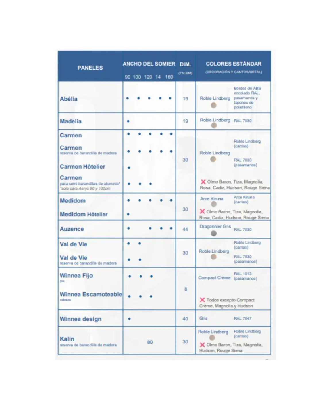 El espacio entre los barrotes o los elementos de la estructura es inferior o igual a 65 mm y el espacio entre el somier y la parte inferior de la barandilla es inferior o igual a 65 mm.