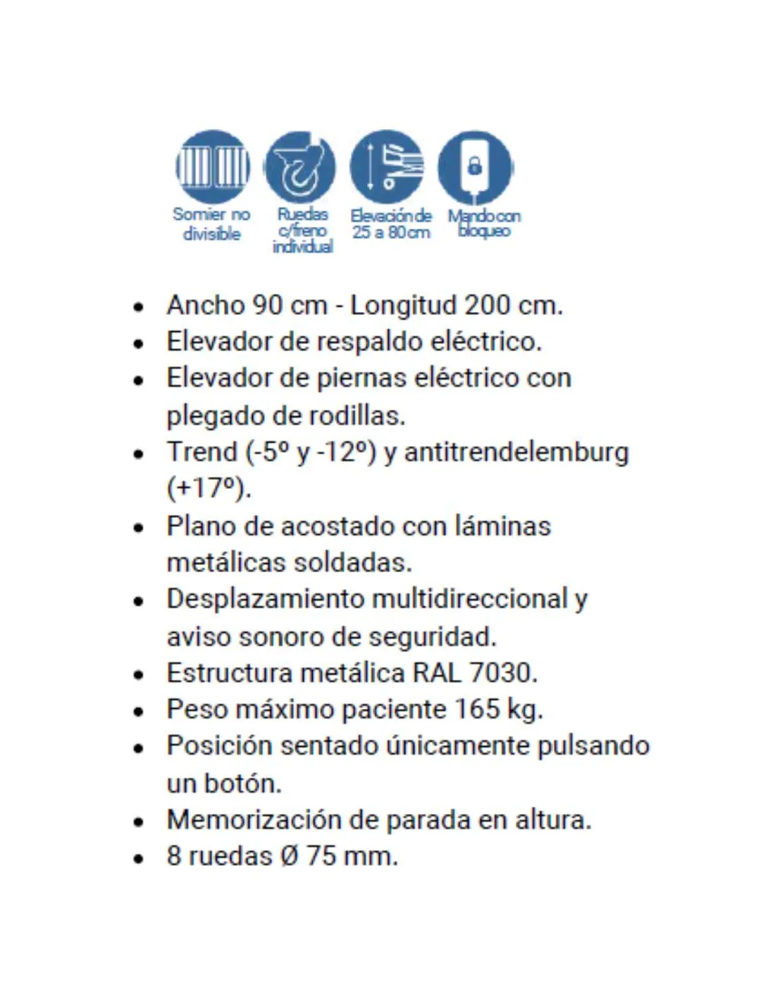 Más segura: Desciende hasta los 24.5 cm para evitar lesiones en las posibles caídas y eleva hasta los 80 cm para facilitar la labor de los cuidadores. Altura de salida del paciente memorizable.