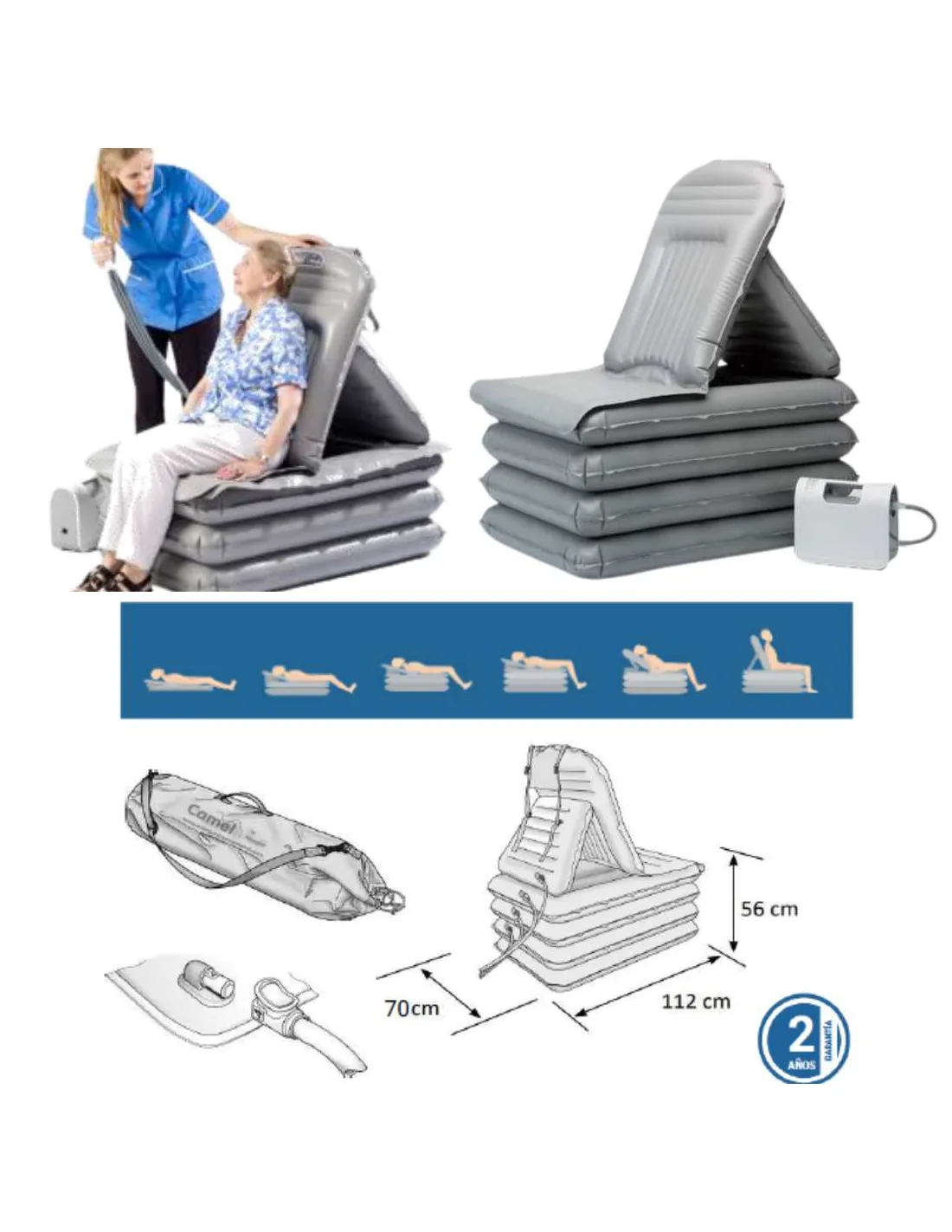 El cojín elevador Camel es un dispositivo de elevación inflable diseñado para incorporar y levantar a una persona que ha