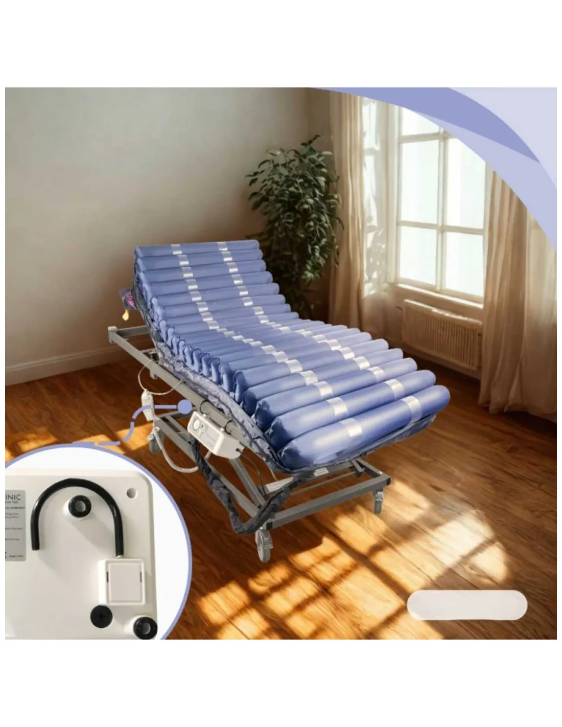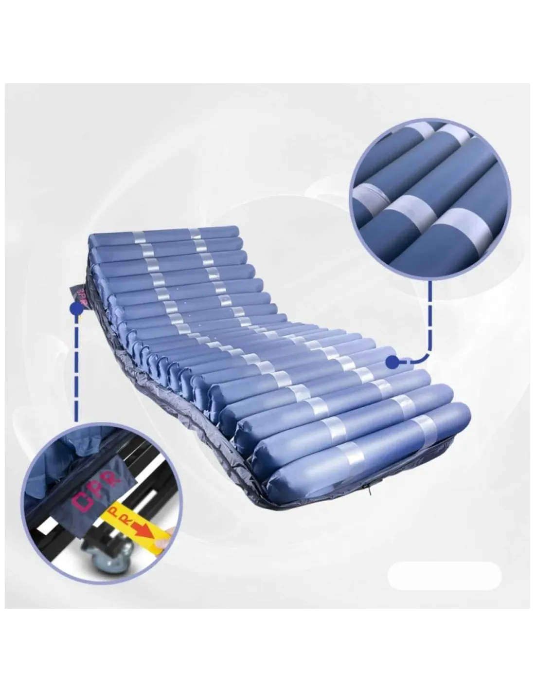 Este colchón de celdas de aire se trata de uno de los más completos y eficaces del mercado, con un efectivo sistema de alternancia entre ciclos terapéuticos en movimiento y estáticos. El ajuste de presión en este colchón de aire es excelente, pues cuenta con 20 celdas individuales que se inflan y se desinflan alternativamente en ciclos, proporcionando así a los pacientes un alivio de presión adecuado.