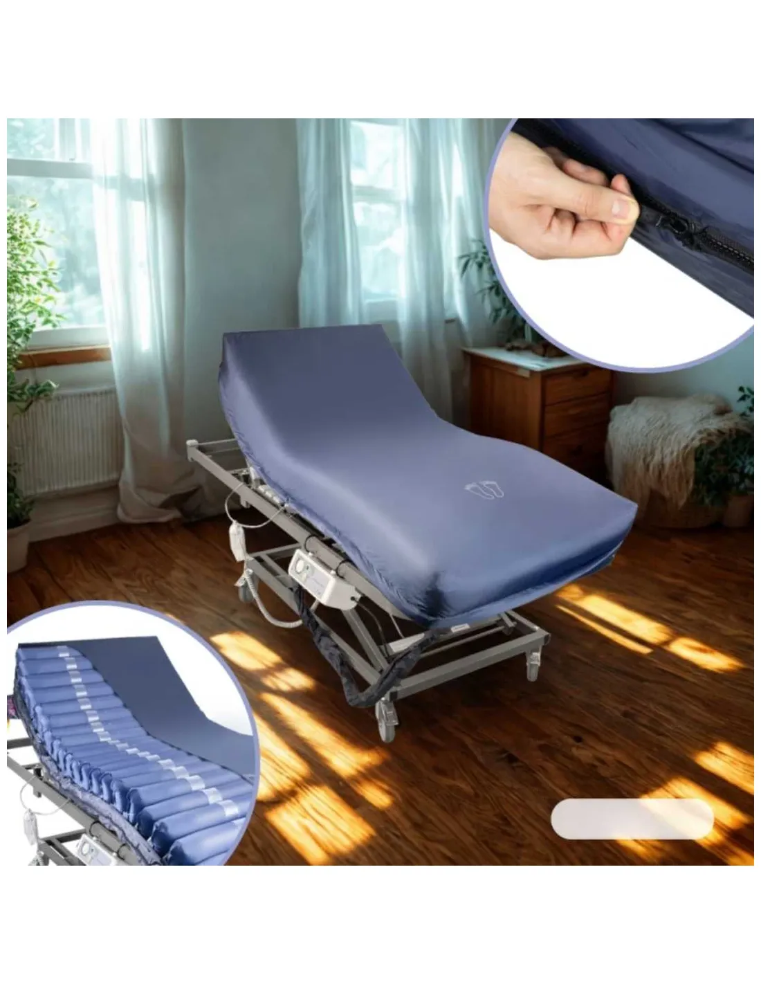 Es apto para cualquier cama, utilízalo en tu casa o en el hospital, te ayudará a descansar mejor. Su instalación es muy sencilla, se extiende sobre el colchón de aire para enfermos dejando los tubos a los pies de la cama para conectarlos al compresor silencioso que incluye.
