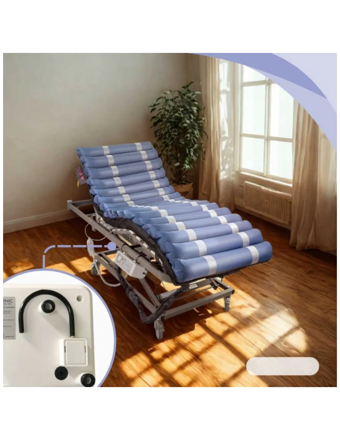 Es apto para cualquier cama con lo que se podrá usar en casa o en el hospital, proporcionando un descanso reparador, cómodo y seguro. Su instalación es muy sencilla, se extiende sobre una colchoneta antiescaras dejando los tubos a los pies de la cama para conectarlos al silencioso compresor que incluye.
