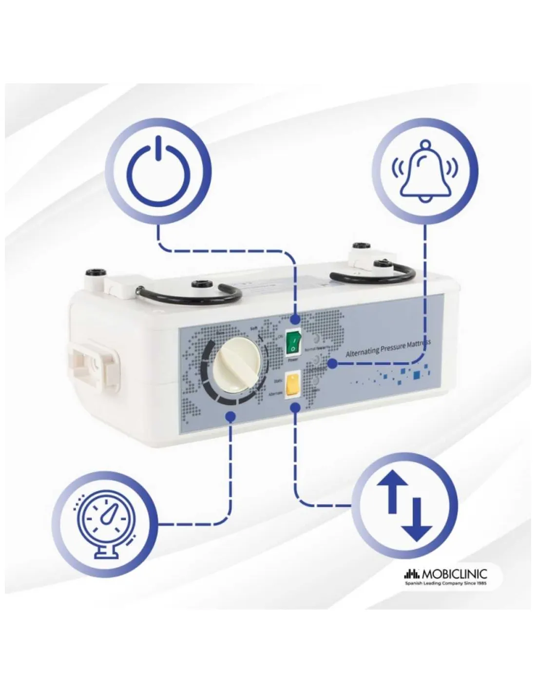 Como ya se ha mencionado anteriormente, cuenta con una función de alternancia en el que la bomba se inflará y desinflará para las celdas en intervalos regulares que pueden ser de 10 o 12 minutos, para cambiar la posición de contacto entre el paciente y la cama, estimulando así la circulación de la sangre para prevenir las úlceras por presión y facilitar su recuperación, reduciendo también el dolor del paciente e intensificando la labor de enfermería.