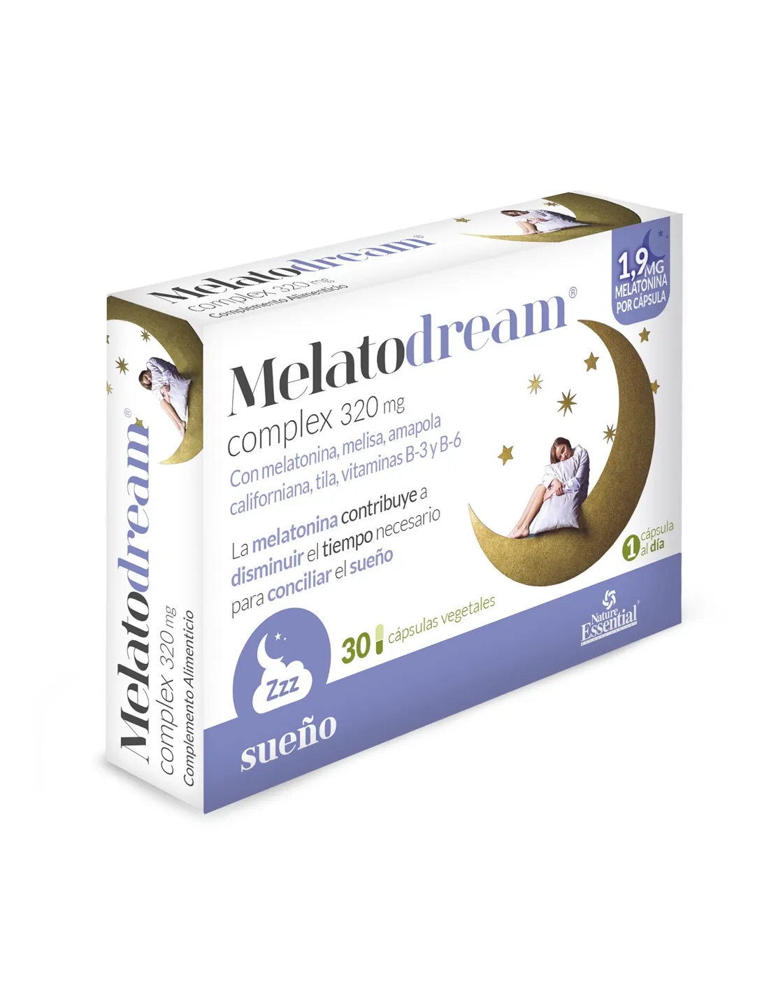 Melatodream® 320 mg cápsulas vegetales de Nature Essential Blíster está formulada con Melatonina, Melisa, Amapola Californiana, Tila y Vitaminas B-3 y B-6 que tienen propiedades que ayudan a conciliar el sueño, reducir el nerviosismo y aliviar la sensación de jet-lag.