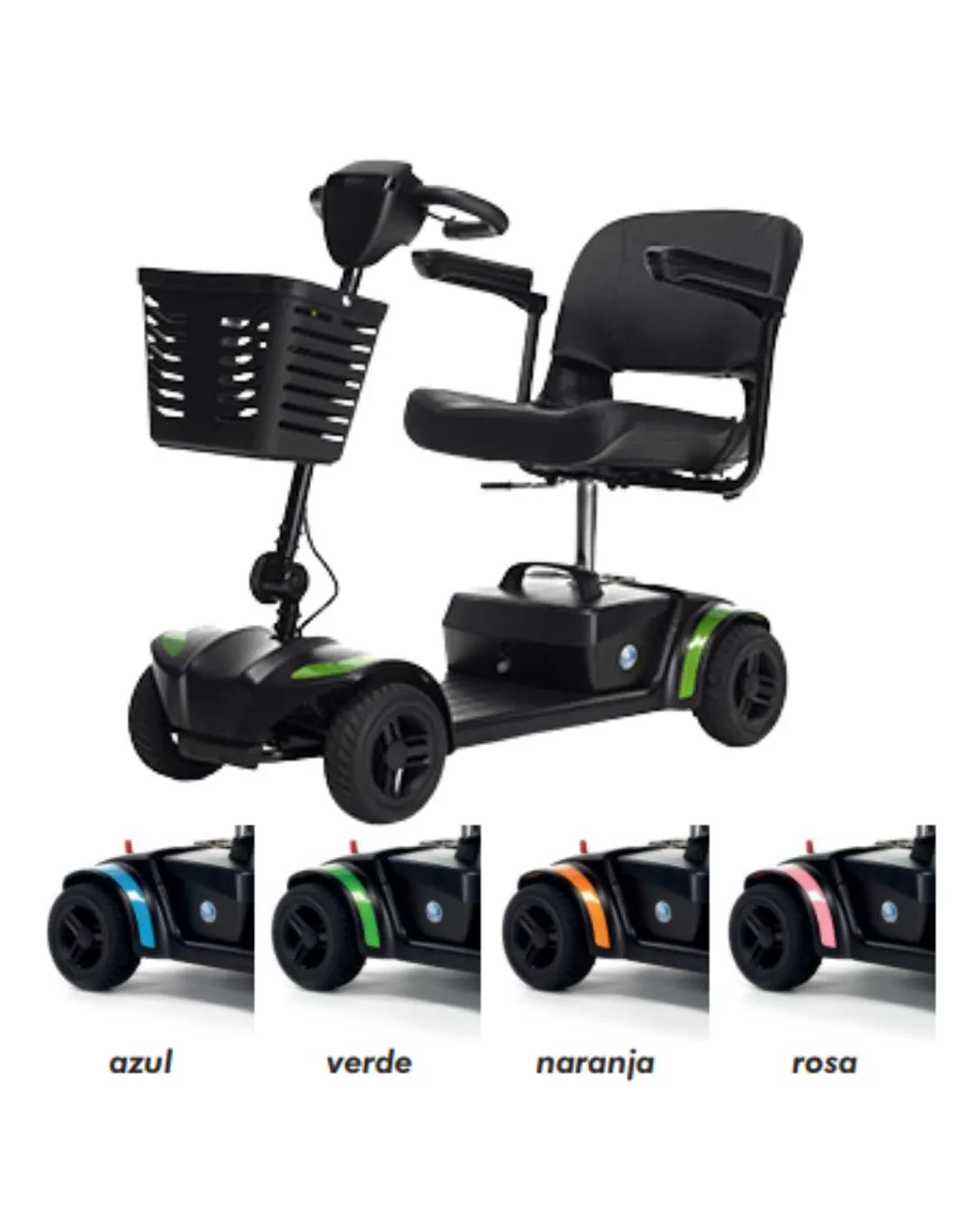 azul verde naranja rosa. Fácil de usar, con indicador LED de estado de la batería . Columna de dirección ajustable. Cabe en un maletero pequeño.