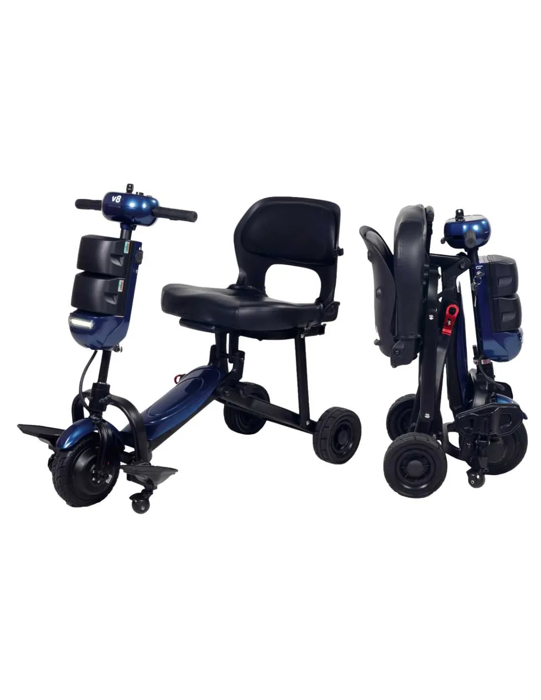 Nuestro patinete plegable V8 hace mucho más fácil su transporte, ya sea guardándolo en el maletero del coche o arrastrándolo como una maleta, gracias a su asa retráctil.