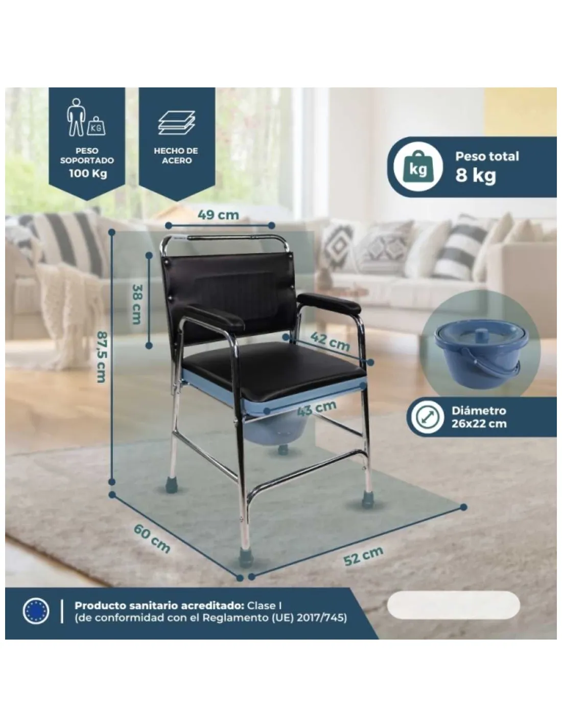 Características técnicas de la silla con WC/inodoro: