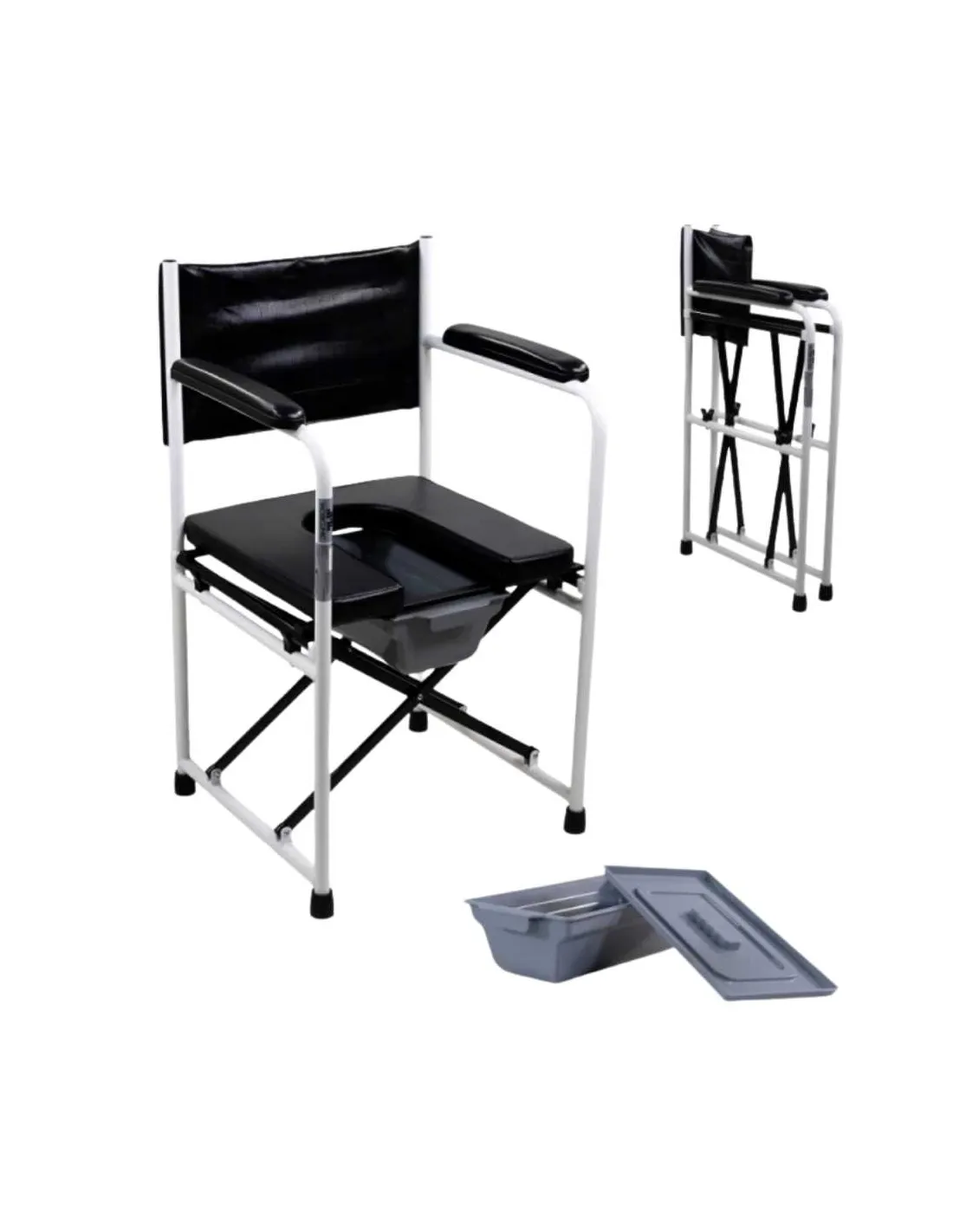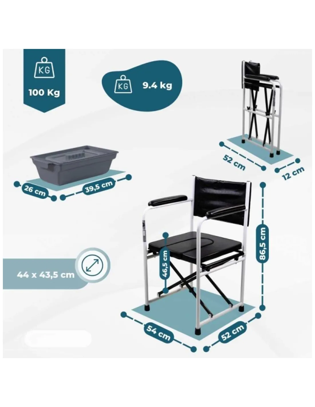 La silla wc plegable cuenta también con un amplio respaldo y asiento para una extrema comodidad.