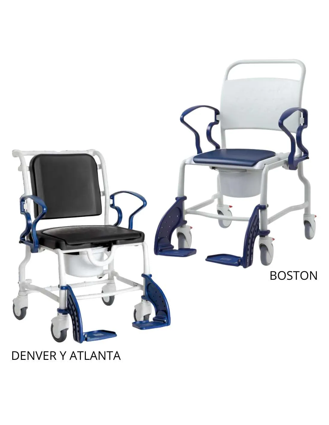 Silla de Ducha y WC XL Boston · Denver · Atlanta · Ancho de Asiento 52, 58 y 64 cm