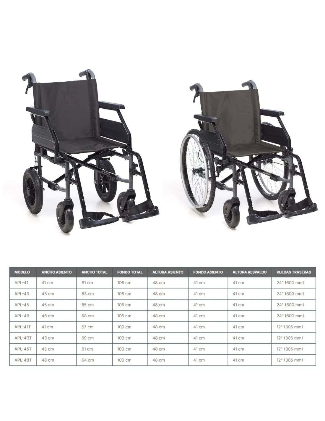 La silla de ruedas de aluminio ligera Apolo Lite ha sido diseñada pensando en la comodidad del usuario y la facilidad de manejo para el acompañante. Su estructura resistente pero ligera facilita el transporte y la maniobrabilidad en distintos entornos.