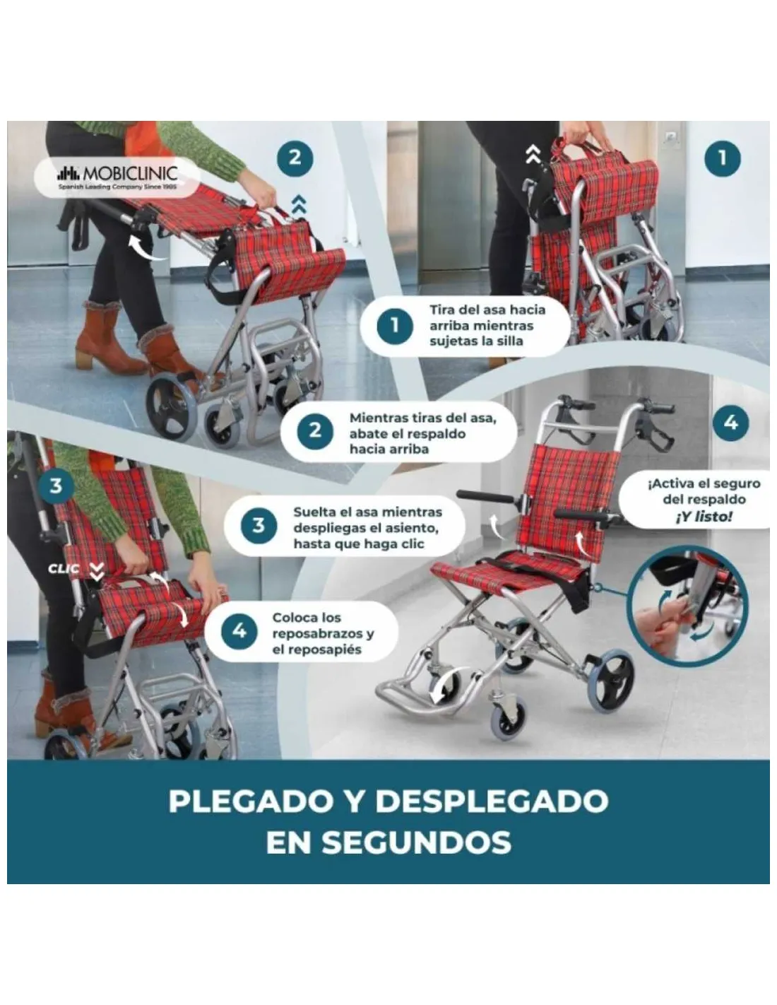 Gracias al fácil plegado y ligereza de esta silla de ruedas de aluminio es posible transportarla a cualquier lado con el mínimo esfuerzo. Esto permite poder guardarla de forma cómoda en casa o incluso plegarla si la necesitas meter en lugares estrechos.