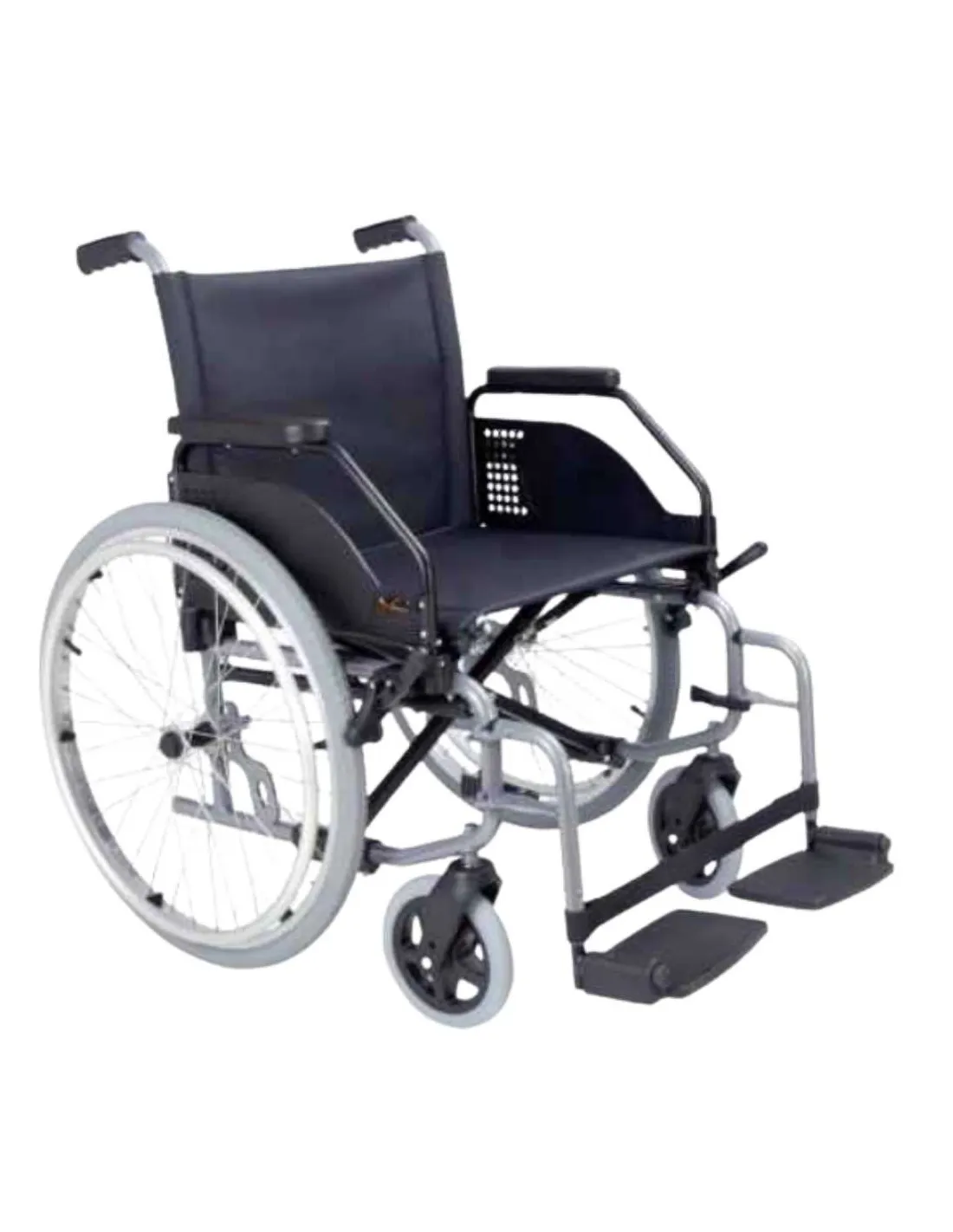 Silla de Ruedas modelo Peninsular con ruedas traseras de 600 o 300 mm macizas hasta 150 Kg. de especial ancho de asiento 54 y 58 cm.