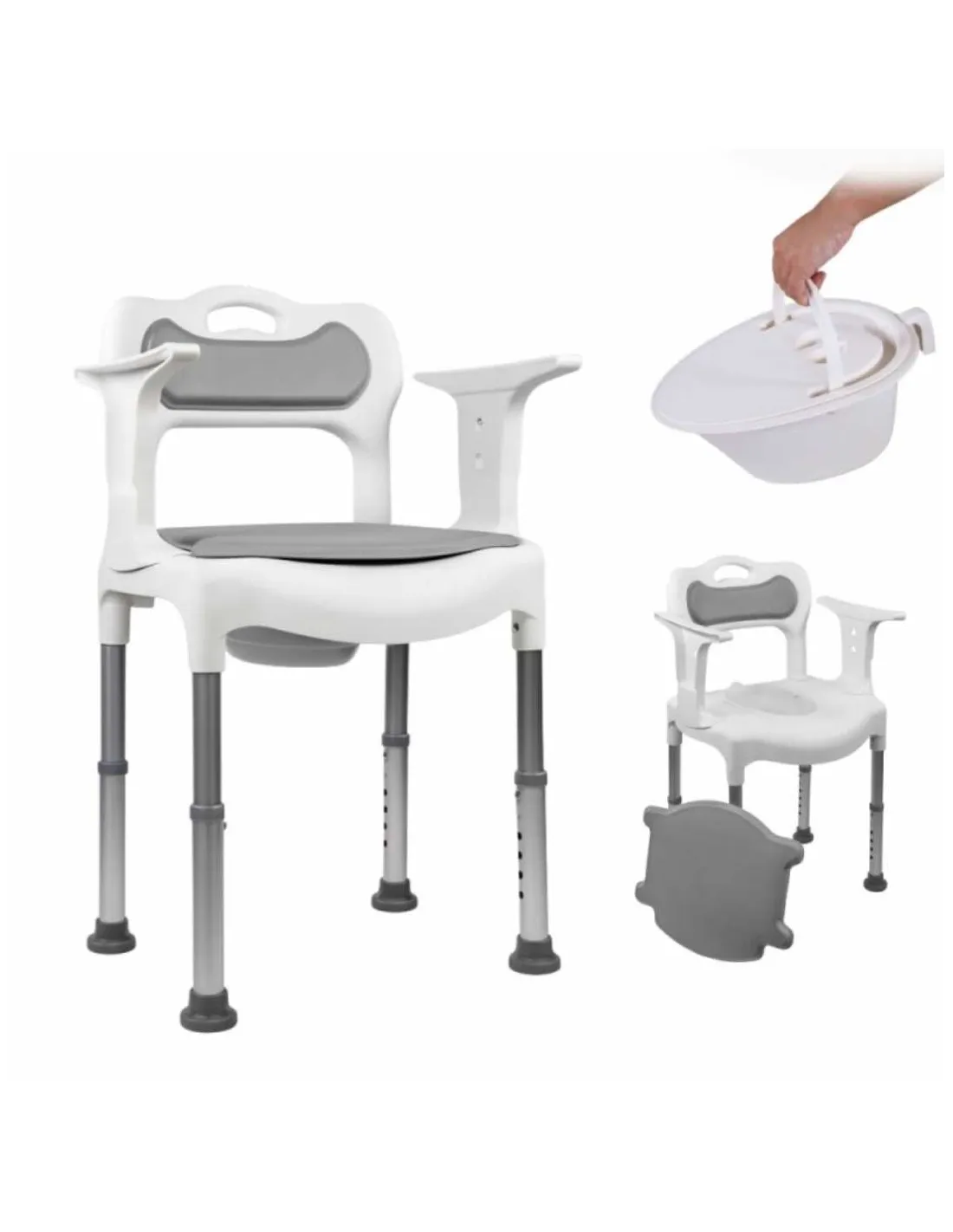 La silla de baño con orinal Guido es una solución versátil, práctica y segura para quienes necesitan un apoyo adicional en el aseo diario. Gracias a su diseño multifuncional puede ser utilizada como silla de baño, inodoro portátil o asiento de apoyo durante el baño, adaptándose a diferentes situaciones y necesidades.