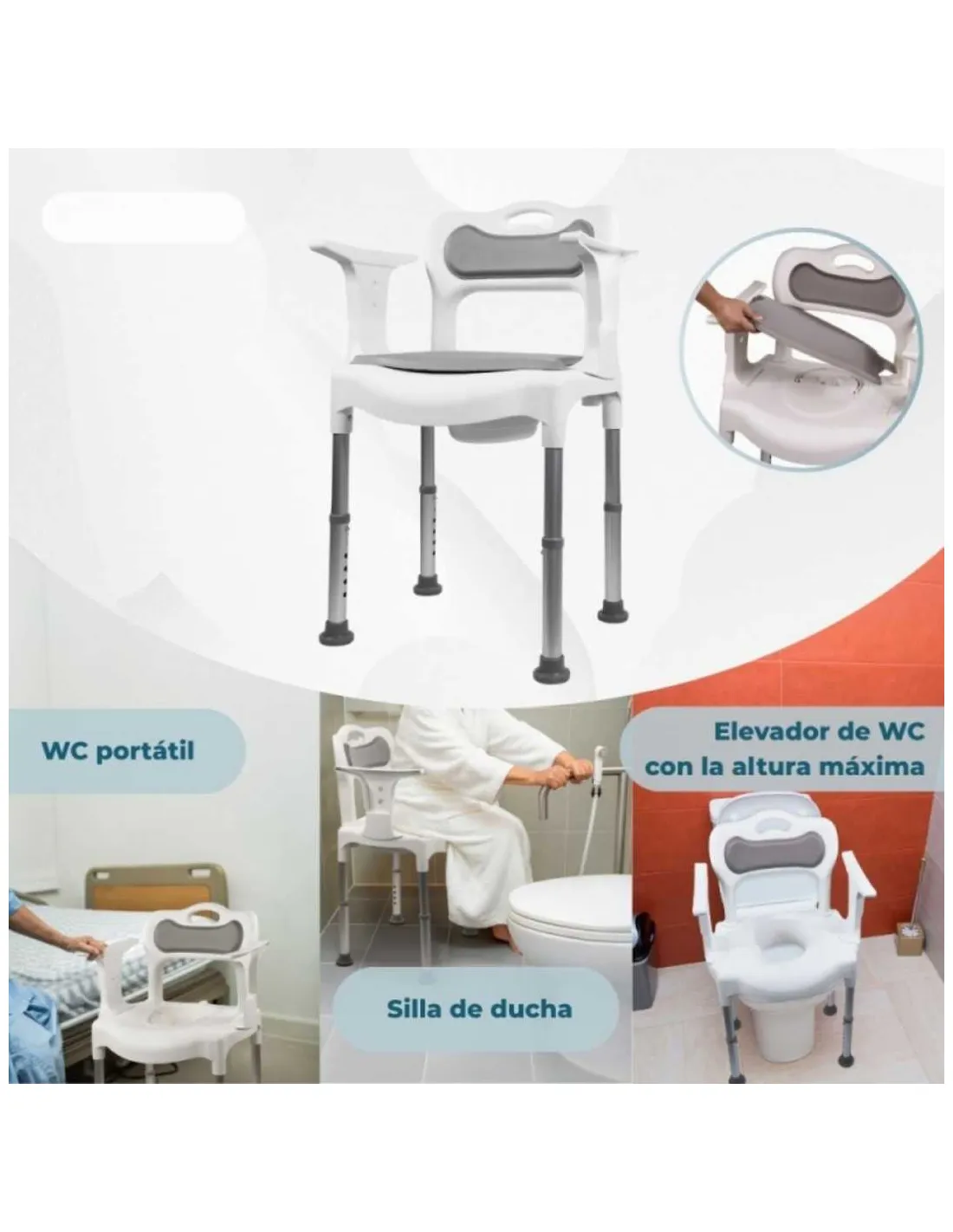 Silla Ducha con WC y Elevador WC GUIDO regulable en altura