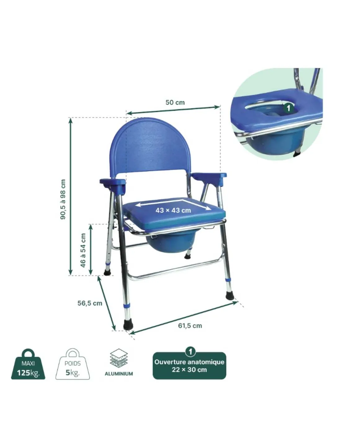 Se suministra con almohadilla suave que cubre el asiento perforado (abertura anatómica de 22 x 30 cm).