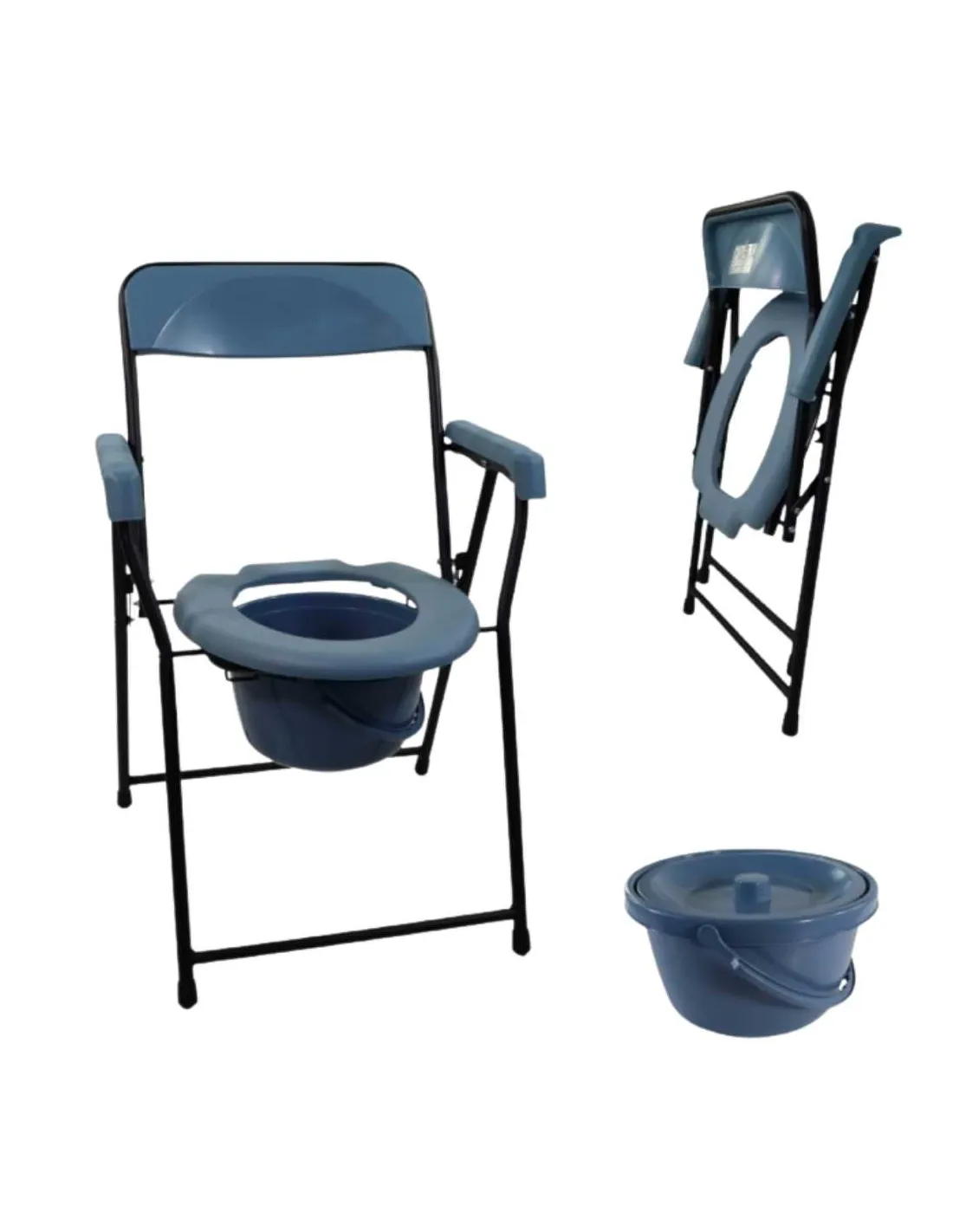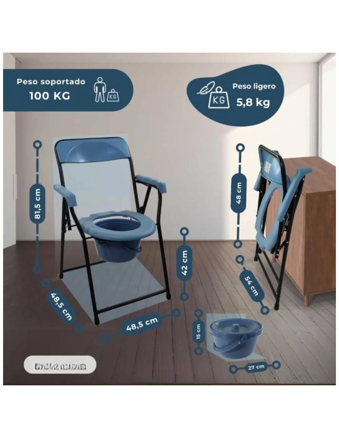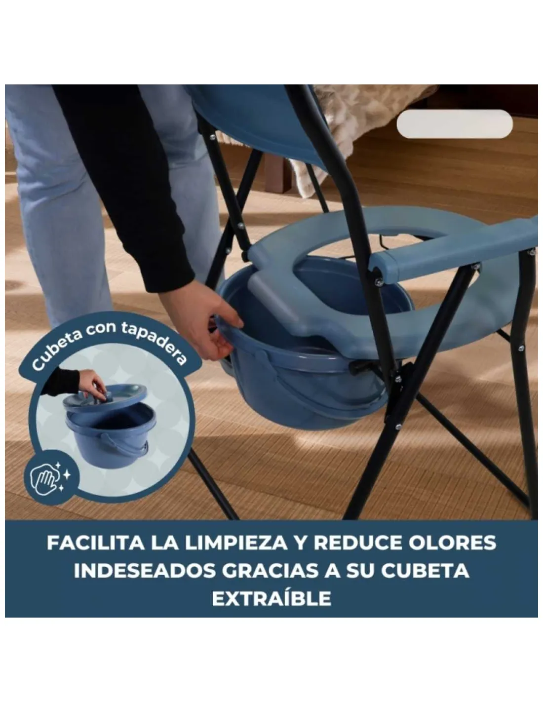 Esta silla con inodoro cuenta con unas conteras antideslizantes que ofrecen una mayor seguridad, y con un respaldo amoldado a la forma del cuerpo en color azul para una mayor comodidad.