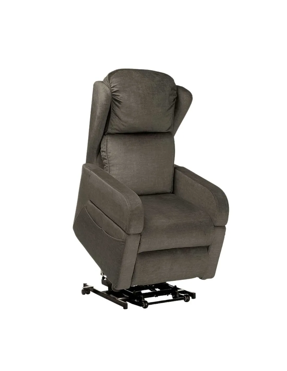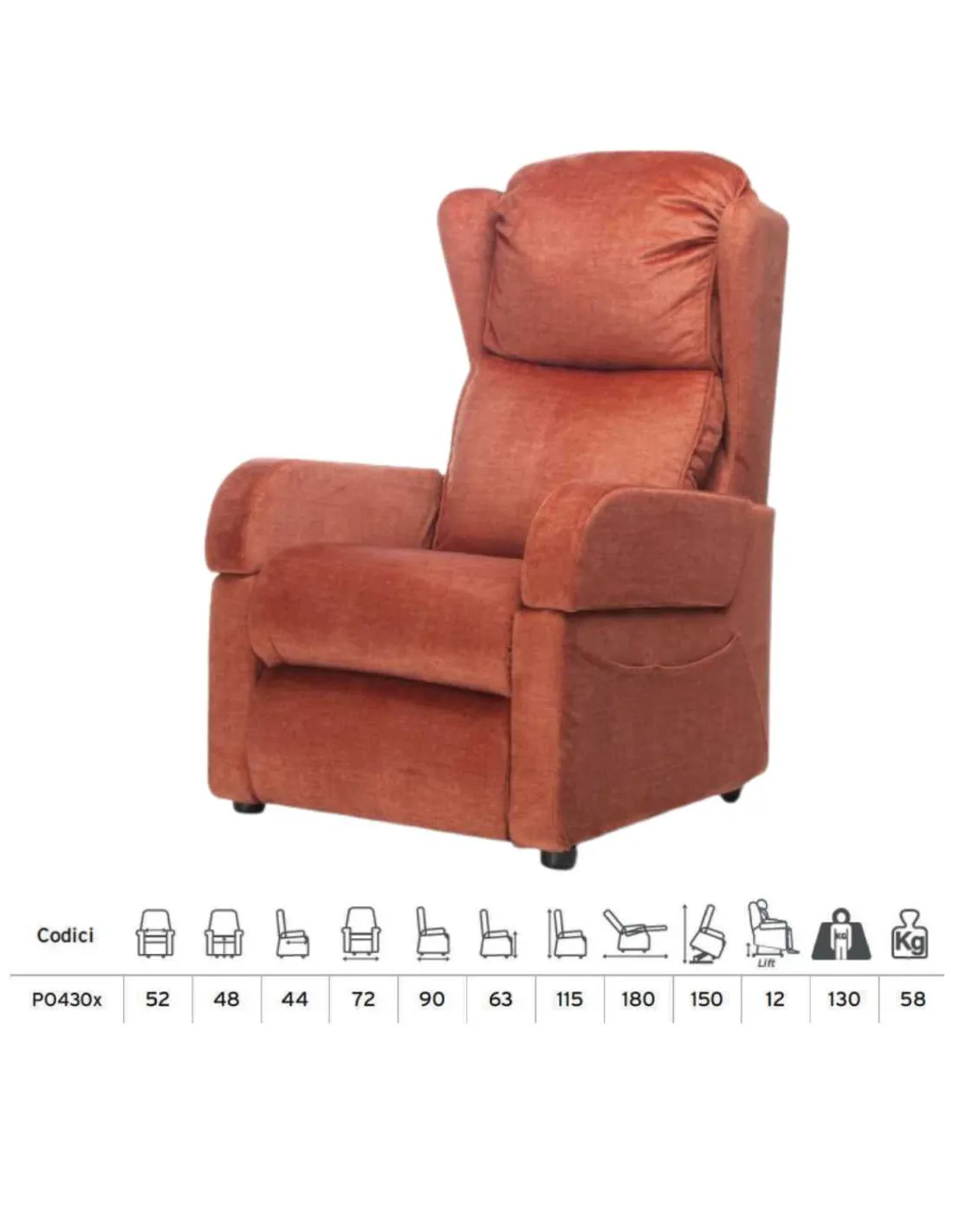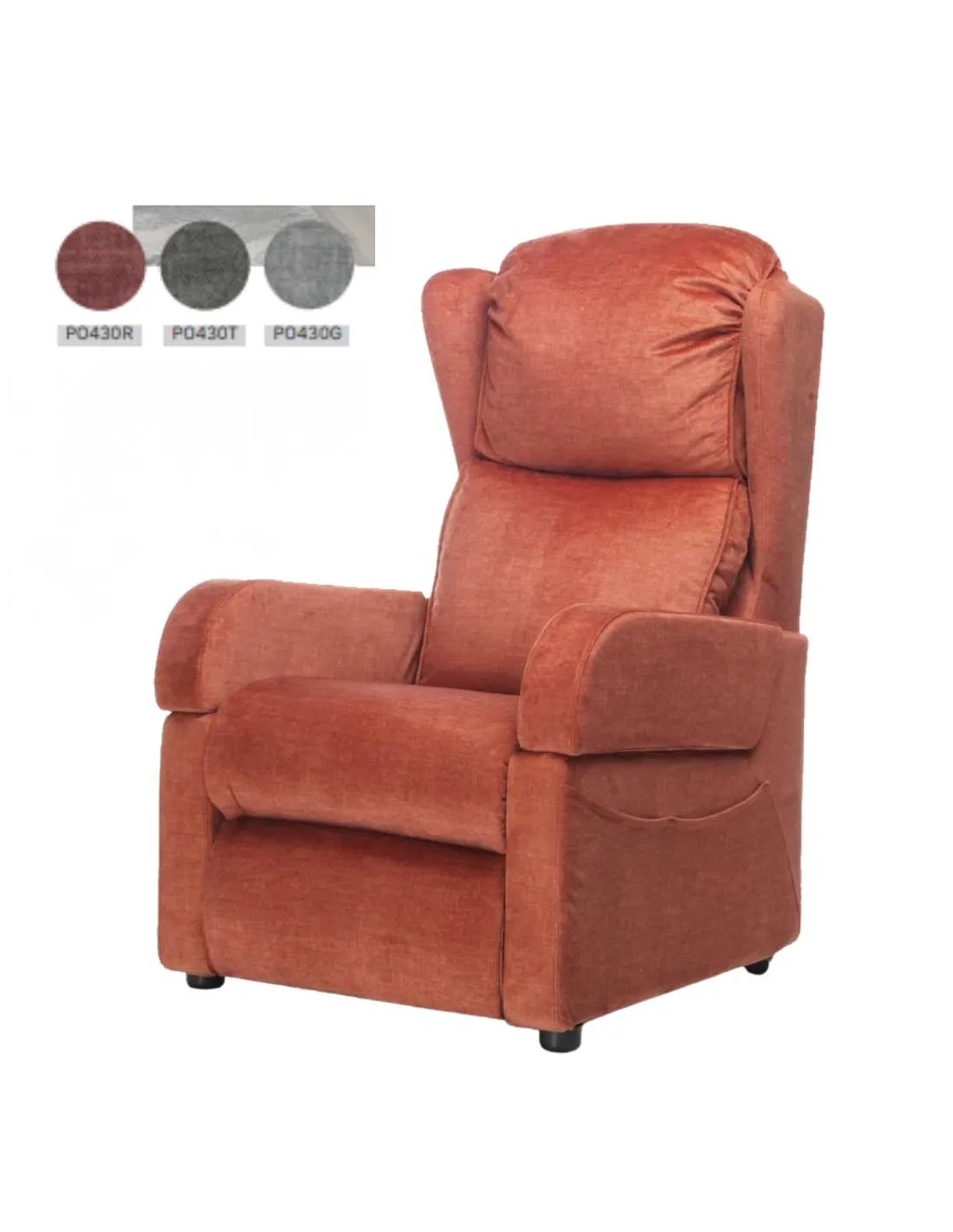 Sillón elevador CLYZIA, diseñado para la relajación y el descanso. Asiento acolchado y respaldo con tejido flocado.Directorio de dispositivos médicos.