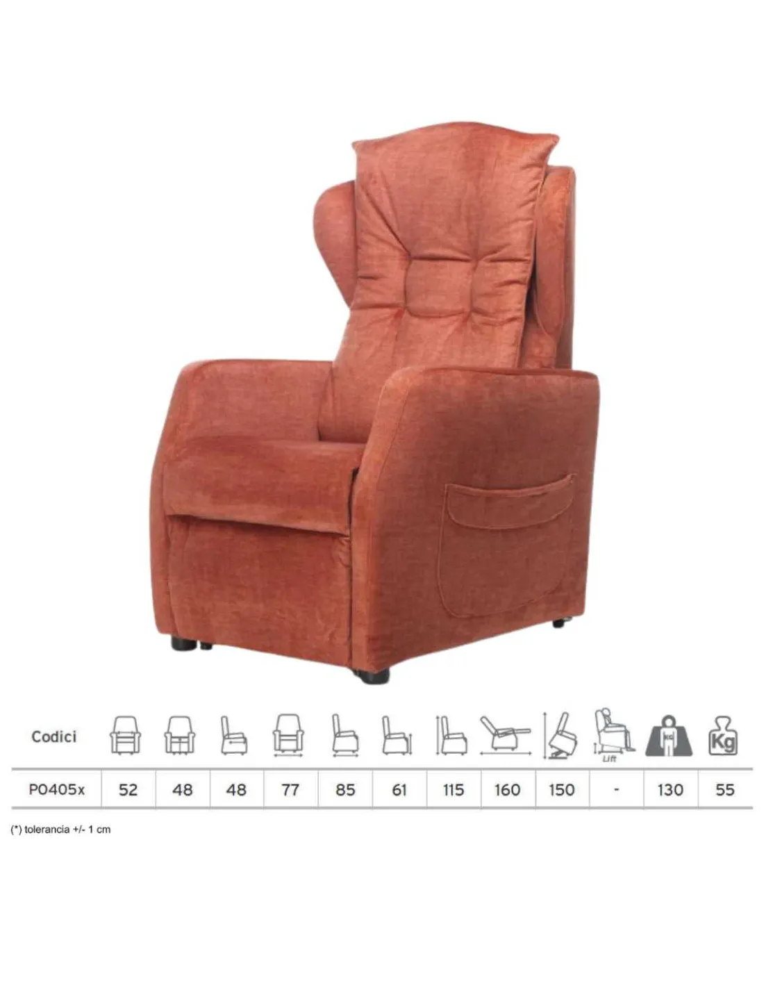 Peso máximo soportados:130 kilos. Peso: 55 Kg. Número de motores: 2. Piezas motorizadas: Asiento, respaldo, reposapiernas.